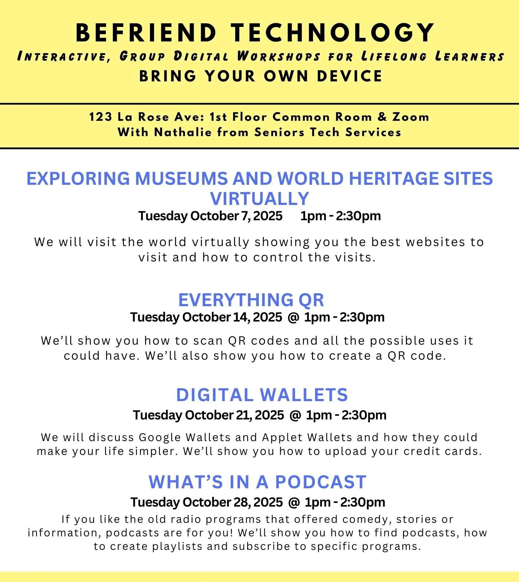 As part of this in-person group exclusively for seniors, you will have an opportunity to:
