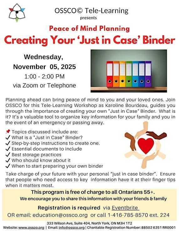 “OSSCO Tele-Learning workshop to learn about Service Canada Caregiving benefits and leave from the comfort of your own home!