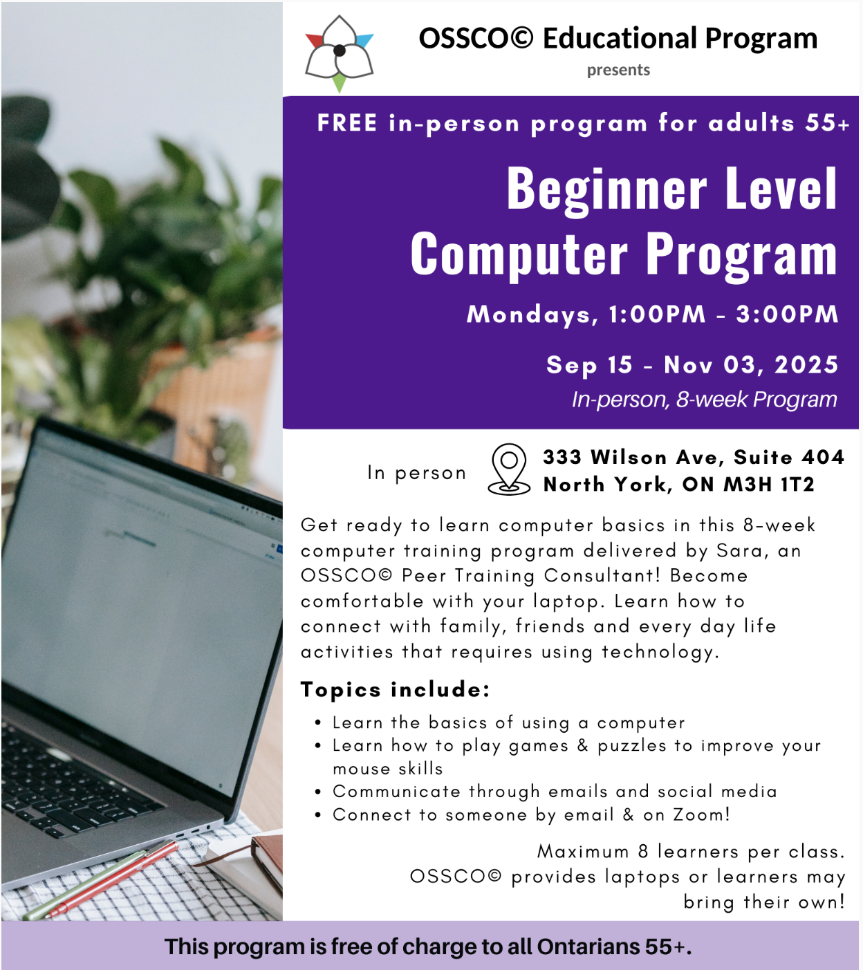 Come join us at OSSCO for an exciting workshop on Internet Basic Computer Skills! Whether you're a beginner or looking to brush up on your tech knowledge, this in-person event is perfect for you. Our knowledgeable instructors will guide you through the basics of internet navigation, email, and more. Don't miss out on this opportunity to enhance your computer skills in a friendly and supportive environment. See you there!”
