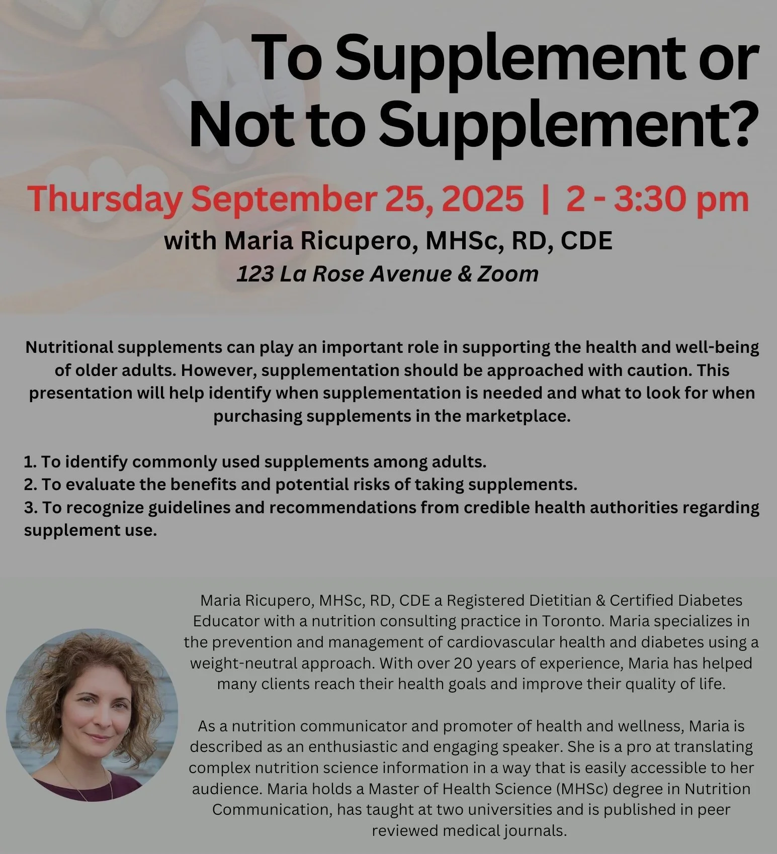 Event type: Virtual or In Person (123 La Rose Avenue, Etobicoke)