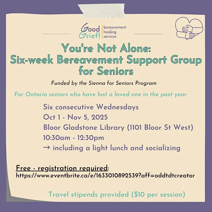 This program is funded by Sienna for Seniors Foundation and brought to you by Good Grief! Bereavement Healing Services, a registered charity.